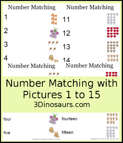 Click on the files below to download your copy of the Number Matching with Pictures 1 to 15.