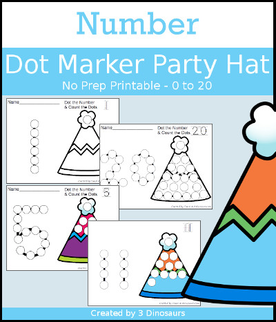 - Dot marker numbers and matching number on the party hat