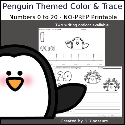 Penguin Themed Number Color & Trace contains 43 pages: