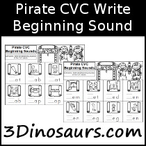 Pirate CVC Words Write Beginning Sounds contains 5 pages: