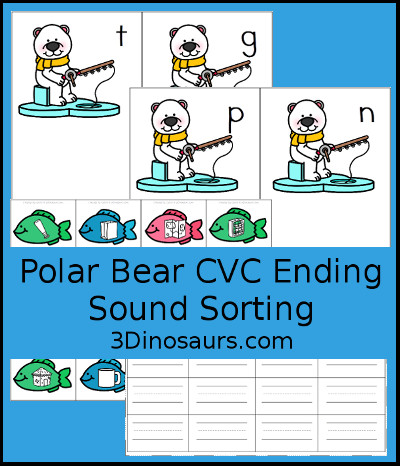 Polar Bear Ending CVC Word Sounds Sorting Printable contains 4 pages: