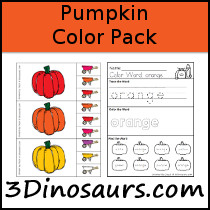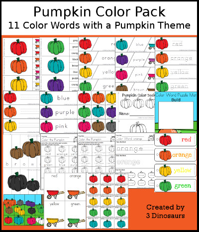 - Pumpkin Color Packs has the colors red, orange, yellow, green, blue, purple, pink, brown, gray, white, and black.