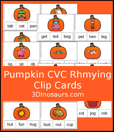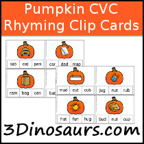 Pumpkin CVC Rhyming Clip Cards contains 6 pages: