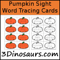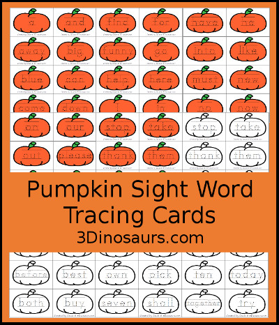 Pumpkin Sight Word Tracing Card Printables contains 65 pages: