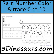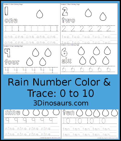 Rain Number Color and Trace Printable contains 11 pages: