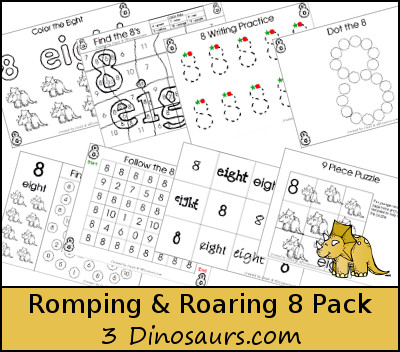 33 Romping & Roaring Number Packs. There are packs for numbers 1 through 20. With dual themes for 5, 10, 15 & 20. There is also review packs every 4 numbers. Plus 11 fun extras.