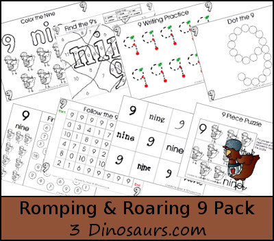 33 Romping & Roaring Number Packs. There are packs for numbers 1 through 20. With dual themes for 5, 10, 15 & 20. There is also review packs every 4 numbers. Plus 11 fun extras.