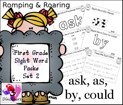 Romping & Roaring First Grade Set 2: Ask, As, By, Could Packs contains 24 pages: