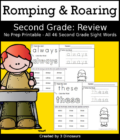 Romping & Roaring Second Grade Sight Words: Review Page contains 46 pages: