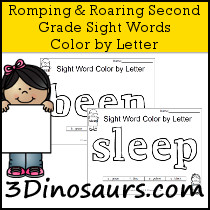 Romping & Roaring Second Grade Sight Words Color by Letter