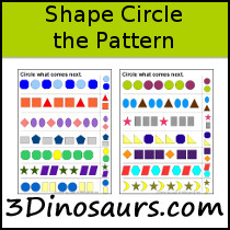 - Shapes in simple patterns to circle what comes next