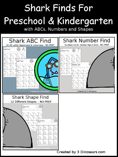 Shark Finds for PreK & Kindergaten; ABCs, Numbers & Shapes