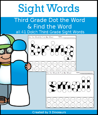 Sight Word Third Grade Dot the Word & Find the Word