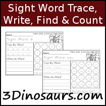 - Writing, tracing, find and count for each sight word
