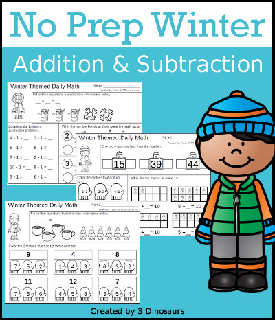 No-Prep Winter Themed Addition & Subtraction contains 36 pages: