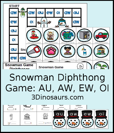Snowman Diphthong Game contains 5 pages: