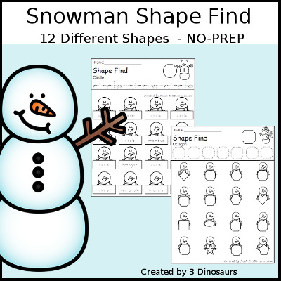 Click on the files below to download your copy of the Snowman Shape Find Printable.