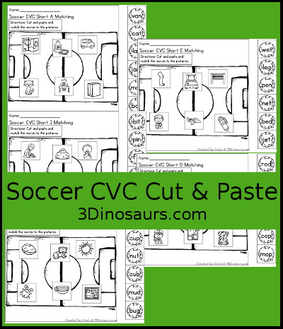 Click on the files below to download your copy of the Soccer CVC Short Vowel Cut & Paste Printable.