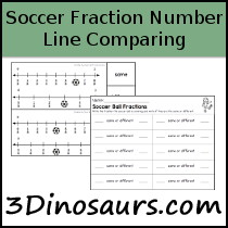 Soccer Fractions Number Line Comparing Printable contains 6 pages: