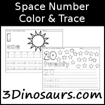 Click on the files below to download your copy of the Space Themed Number Color & Trace.