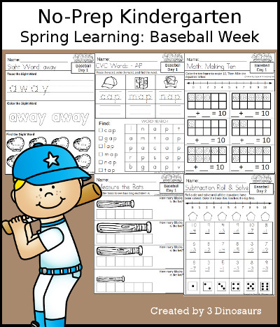 Related tags: No-Prep Grade Level Weekly Packs, Spring Learning: Baseball Week, Kindergarten, Baseball