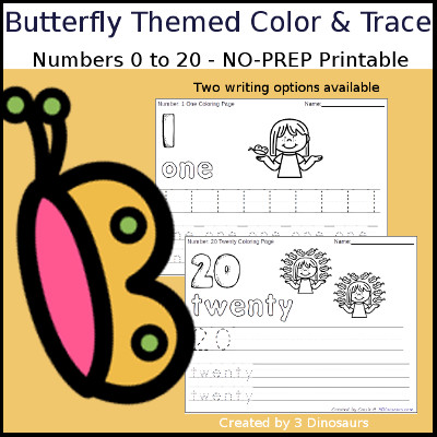 Butterfly Themed Number Color & Trace