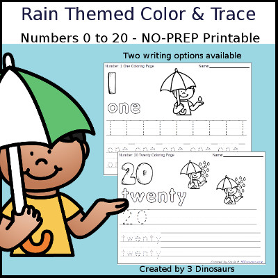 Rain Themed Number Color & Trace contains 43 pages: