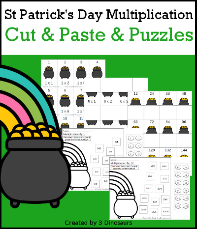 St. Patrick's Day Multiplication Cut & Paste & Puzzles Printables