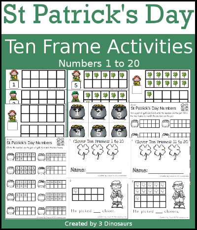 St Patrick's Day Ten Frame Printables contains 7 pages: