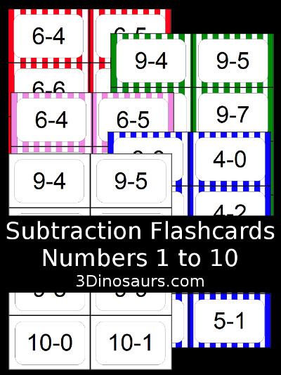 Subtraction Flashcards 1 to 10 contains 50 pages: