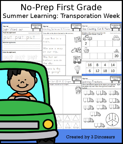 Summer Learning: First Grade Transportation Week - No-Prep contains 22 pages: