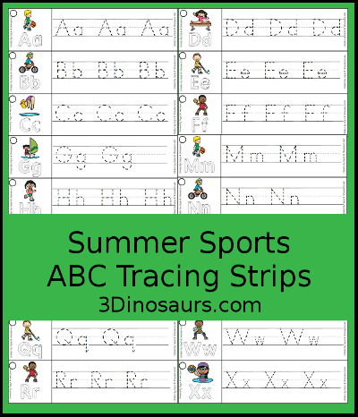 Summer Sports ABC Tracing Strip Printable contains 10 pages: