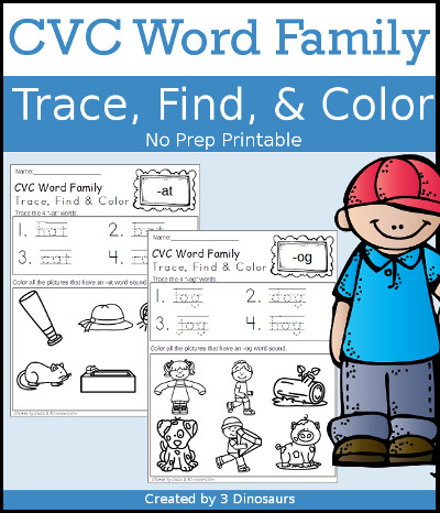 CVC Word Family Trace Find & Color