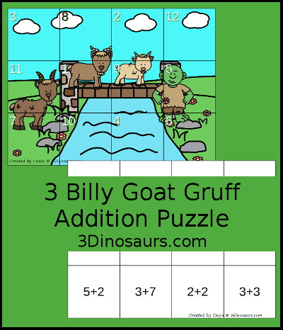 Three Billy Goats Gruff Addition Puzzle Printable