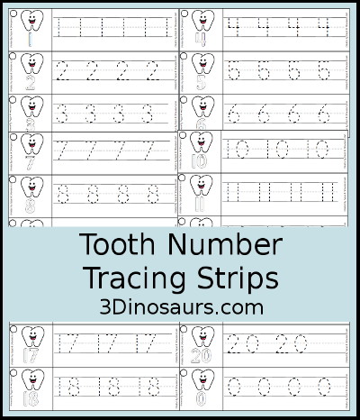 Tooth Number Tracing Strips Printables contains 8 pages: