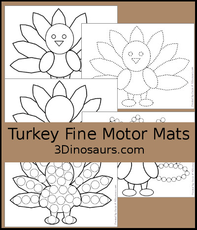 Turkey Fine Motor Mat contains 5 pages: