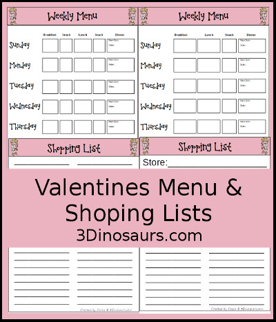 Click on the files below to download your copy of the Valentines Themed Menu Printable.