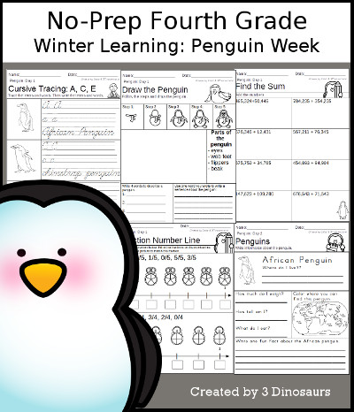Winter Learning: Fourth Grade Penguin Week - No-Prep contains 22 pages: