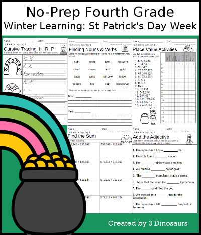 Winter Learning: Fourth Grade St. Patrick's Day Week - No-Prep contains 22 pages: