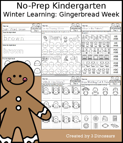 Winter Learning: Kindergarten Gingerbread Week - No-Prep contains 22 pages:
