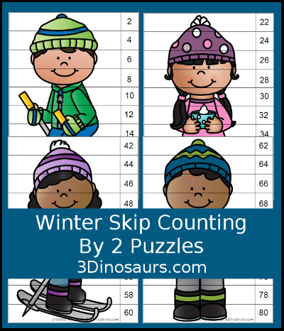 Winter Themed Skip Counting by 2 Puzzles contains 6 pages: